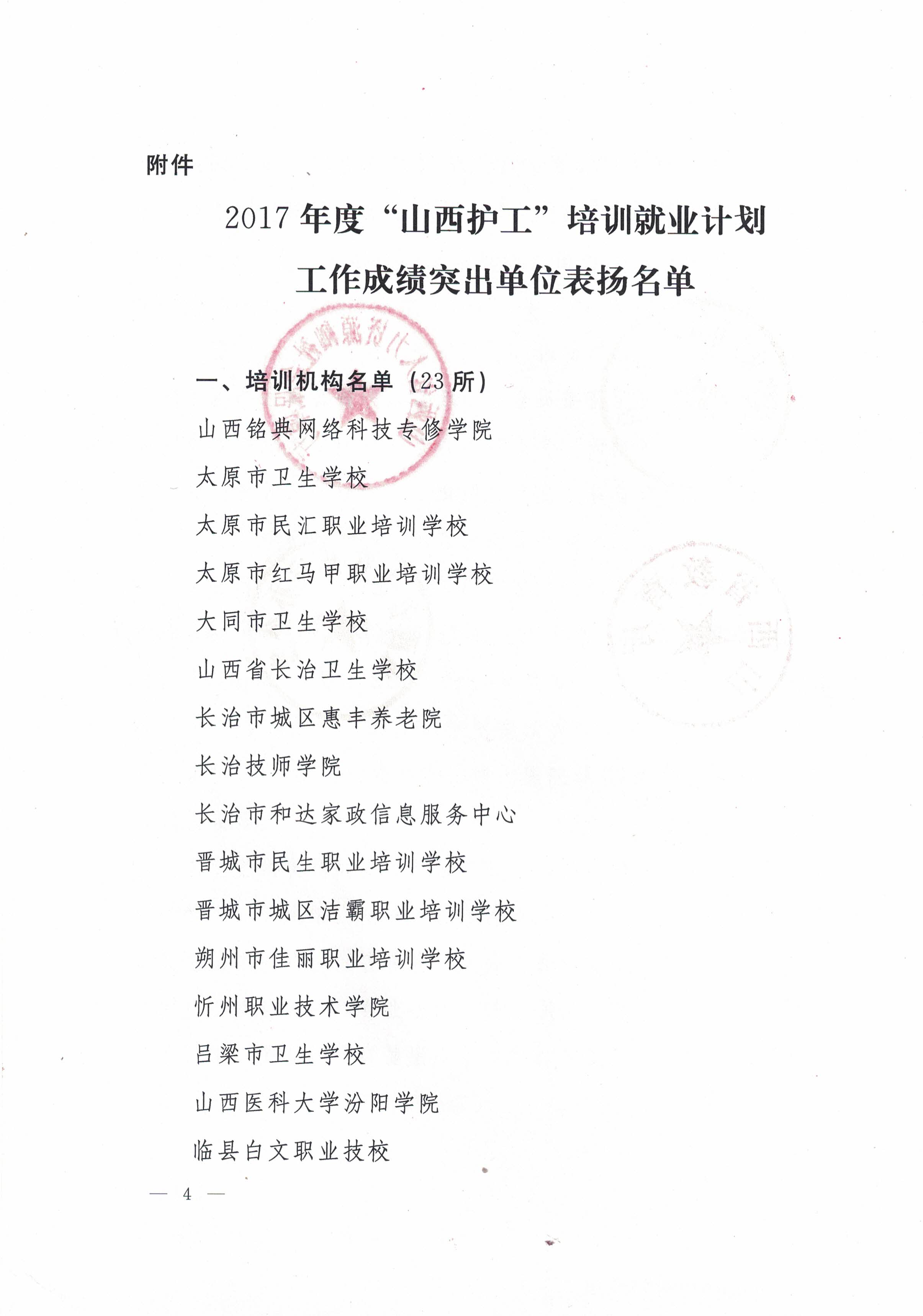 晉城市城區(qū)潔霸職業(yè)培訓(xùn)學(xué)校在2017年的“山西護(hù)工”培訓(xùn)計(jì)劃中成績(jī)斐然,于2018年3月26日獲得了2017年度“山西護(hù)工”培訓(xùn)就業(yè)計(jì)劃工作成績(jī)突出單位的表彰。