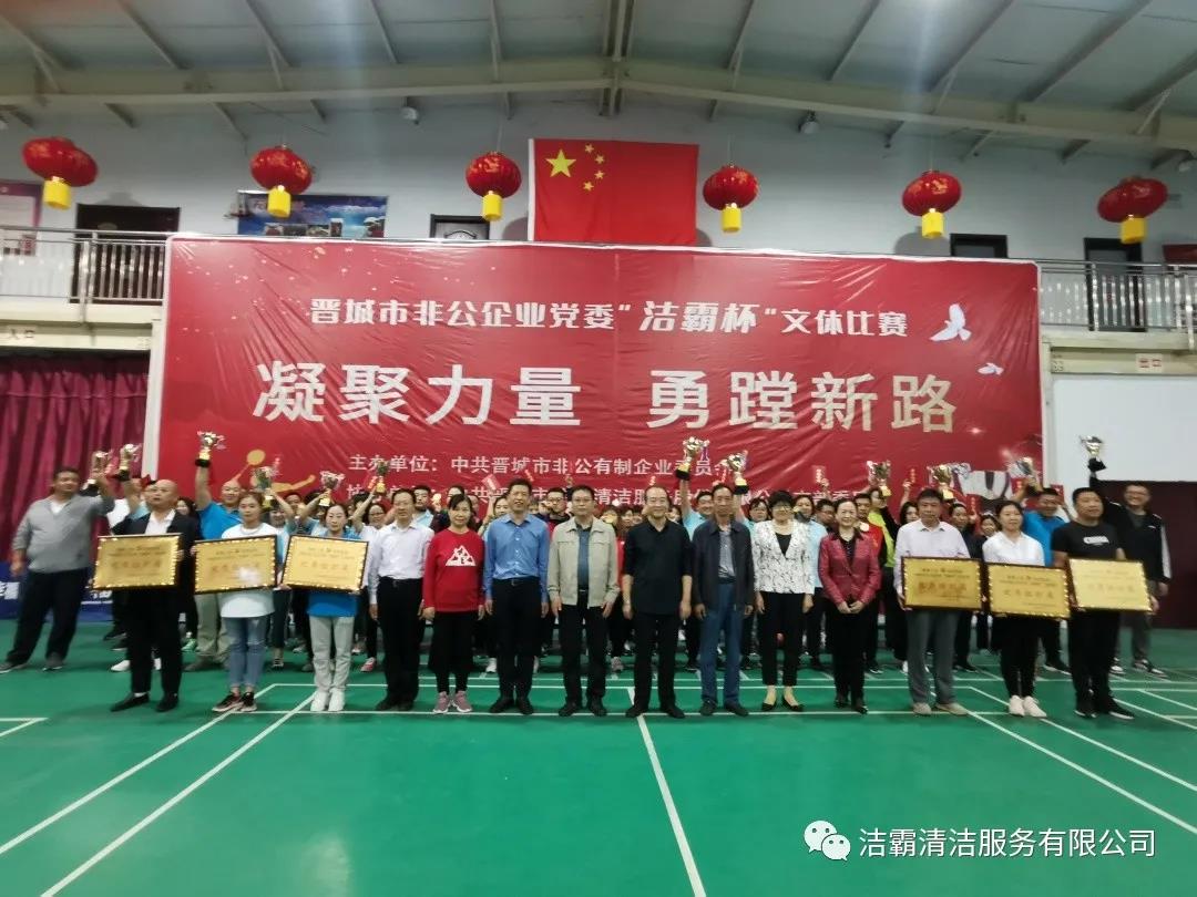 9月25日下午,晉城市非公企業(yè)黨委“潔霸杯”文體比賽落下帷幕。此次比賽由中共晉城市非公有制企業(yè)委員會主辦,中共晉城市潔霸清潔服務(wù)股份有限公司支部委員會冠名協(xié)辦。此次活動的主題是“凝聚力量 勇蹚新路”,旨在新中國成立71周年之際,全面展示非公企業(yè)黨組織開展群眾性體育活動的豐碩成果,以及廣大黨員干部創(chuàng)先爭優(yōu),奮發(fā)進取,勇蹚新路,爭做時代先鋒的精神風貌。