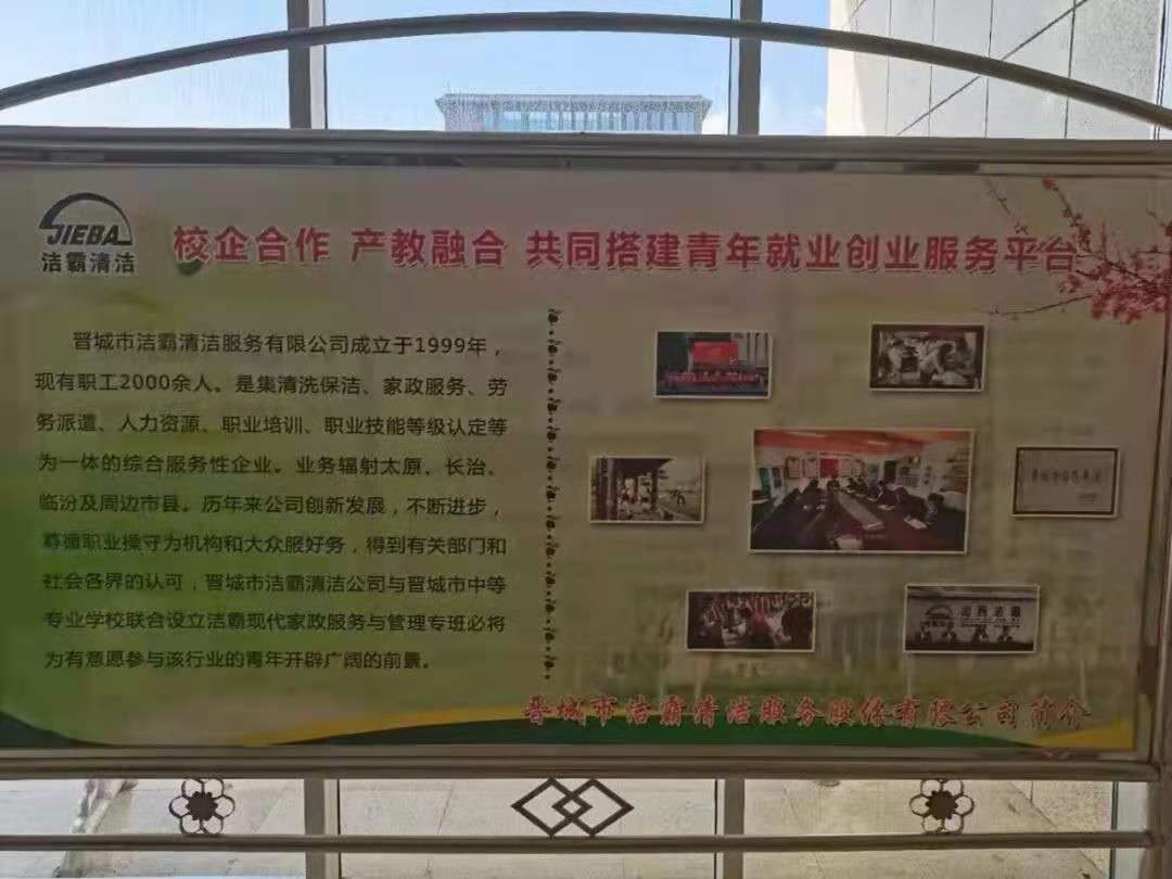5月25日,是晉城市中等專業(yè)學校的“家長開放日”;顒赢斕,晉城潔霸清潔服務股份有限公司攜手晉城市中等專業(yè)學校,共同開展了“校企合作,產(chǎn)教融合, 共同搭建青年就業(yè)創(chuàng)業(yè)服務平臺”主題活動。
