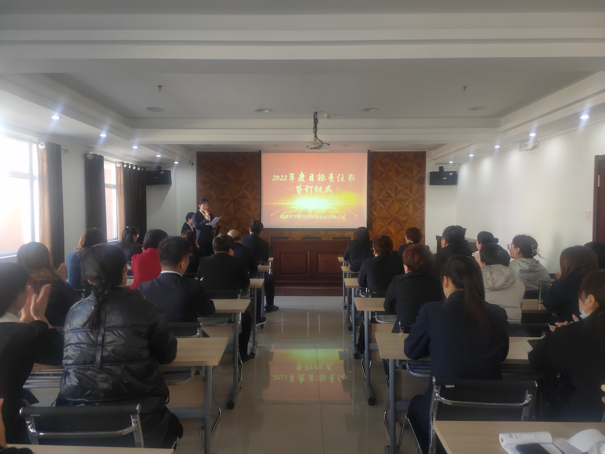 為落實公司2022年工作會議精神,進一步壓實責(zé)任,確保年度工作目標的順利完成, 3月1日下午,晉城市潔霸清潔服務(wù)股份有限公司在活動中心組織召開2022年度目標責(zé)任書簽訂會議。公司黨支部書記、總經(jīng)理程晉軍,副總經(jīng)理張永智、史志霞,經(jīng)理助理,各子公司、分公司、部門經(jīng)理及項目負責(zé)人、主管等參加會議。