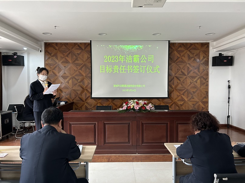 為進(jìn)一步提升目標(biāo)責(zé)任主體考核,壓實(shí)目標(biāo)責(zé)任,強(qiáng)化履職擔(dān)當(dāng),3月24日下午,晉城市潔霸清潔服務(wù)股份有限公司2023年目標(biāo)責(zé)任書(shū)簽訂儀式在公司黨群活動(dòng)中心舉行。公司管理層、各單位、部門(mén)經(jīng)理、主管及文員參加會(huì)議。