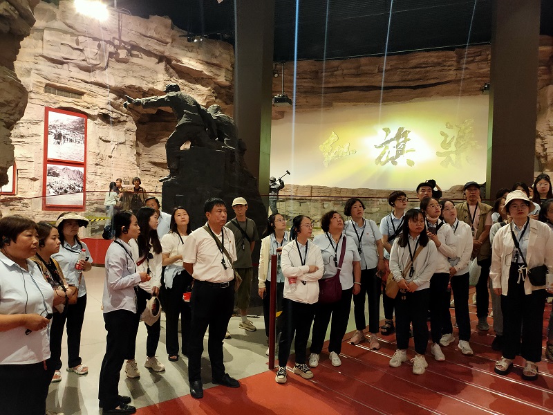 走進紅旗渠紀(jì)念館,大家跟隨講解員的腳步,在千年旱魔,世代抗?fàn);紅旗引領(lǐng),創(chuàng)造奇跡;英雄人民,太行豐碑;山河巨變,實現(xiàn)夢想;繼往開來,精神永恒五個部分逐一駐足學(xué)習(xí),通過一件件珍貴的物品,一幅幅生動的圖片、一幀幀震撼的畫面、一個個感人的故事,讓大家身臨其境感受到林州人民建造人工天河時不畏艱險,頑強拼搏,緊靠一錘一鏟削平1250座山頭、鑿?fù)?11個隧道、架設(shè)151個渡槽的恢弘場景。在場的各位都深深地被“自力更生、艱苦創(chuàng)業(yè)、團結(jié)協(xié)作、無私奉獻”的紅旗渠精神所感動,切實感受到中華民族勤勞堅韌的優(yōu)良傳統(tǒng),領(lǐng)悟社會主義是干出來的,新時代是奮斗出來的。