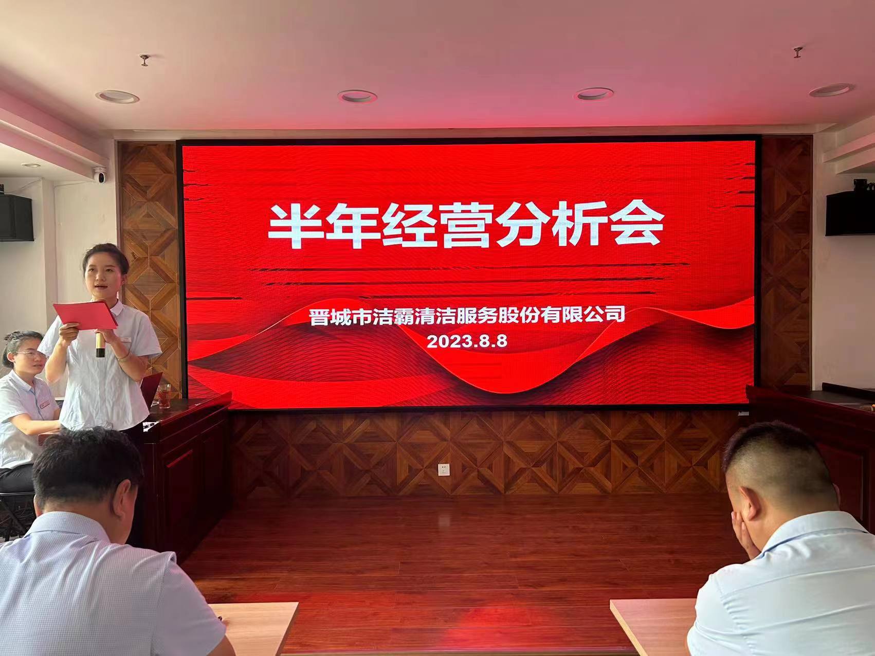 8月8日下午,晉城市潔霸清潔服務股份有限公司在黨群活動中心召開上半年經(jīng)營分析會議,總結上半年經(jīng)營運行情況,研判當前經(jīng)濟形勢,分析存在的矛盾和問題,找準薄弱環(huán)節(jié),研究制定應對措施和解決方案,并安排部署下半年的經(jīng)濟工作。公司總經(jīng)理程晉軍、副總經(jīng)理張永智、史志霞、張小梅出席會議,公司下屬各子公司、分公司經(jīng)理、各部門負責人及主管以上人員參加會議。