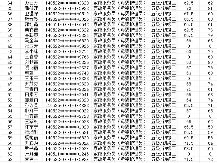 | 晉城市潔霸清潔服務(wù)股份有限公司職業(yè)技能等級(jí)認(rèn)定中心認(rèn)定人員成績(jī)公示 |