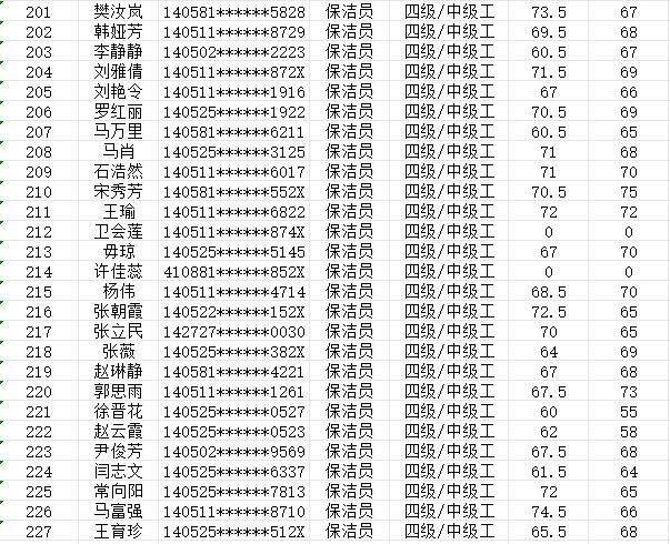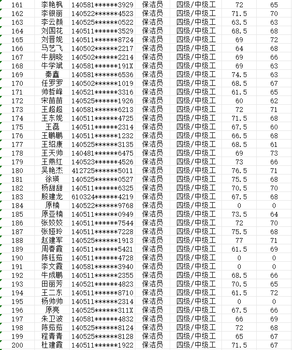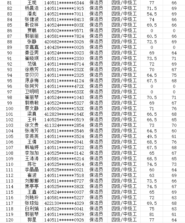 晉城市潔霸清潔服務(wù)股份有限公司職業(yè)技能等級認定中心現(xiàn)將2024年2月4日認定人員成績公示如下: