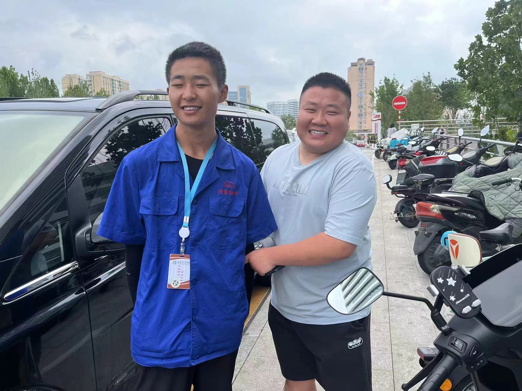 7月30日上午9點左右,潔霸物業(yè)市醫(yī)院項目部的保潔員張科明在打掃醫(yī)院外圍區(qū)域時,發(fā)現(xiàn)一部蘋果14手機遺落在一輛電動車上。四下打量,并沒有看到有人來尋,心想,手機是我們?nèi)粘I钪斜夭豢缮俚奈锲罚簧偃藭奄Y料文件存放在手機中,如果丟了就麻煩了。于是馬上將此情況上報給項目部經(jīng)理馬麗娜。馬麗娜經(jīng)理收到消息后,積極聯(lián)系尋找失主,并和張科明在原地等候失主。