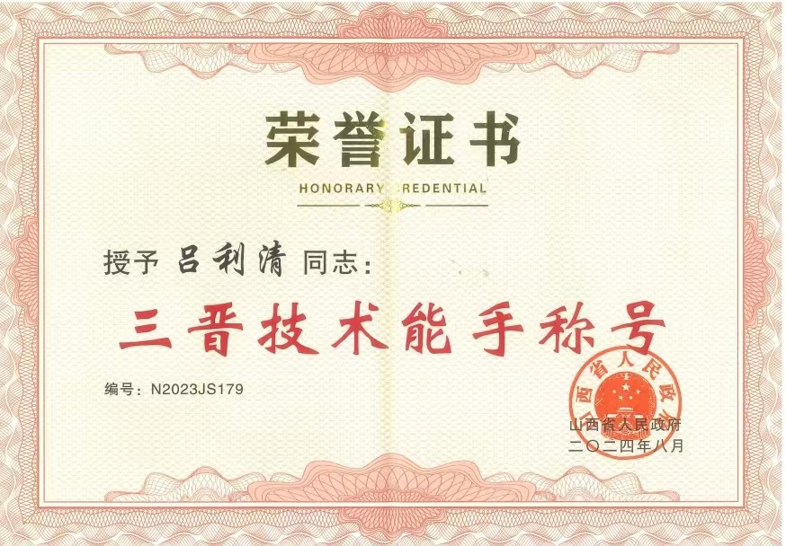 | 我公司呂利清榮獲“三晉技術(shù)能手”稱號 |