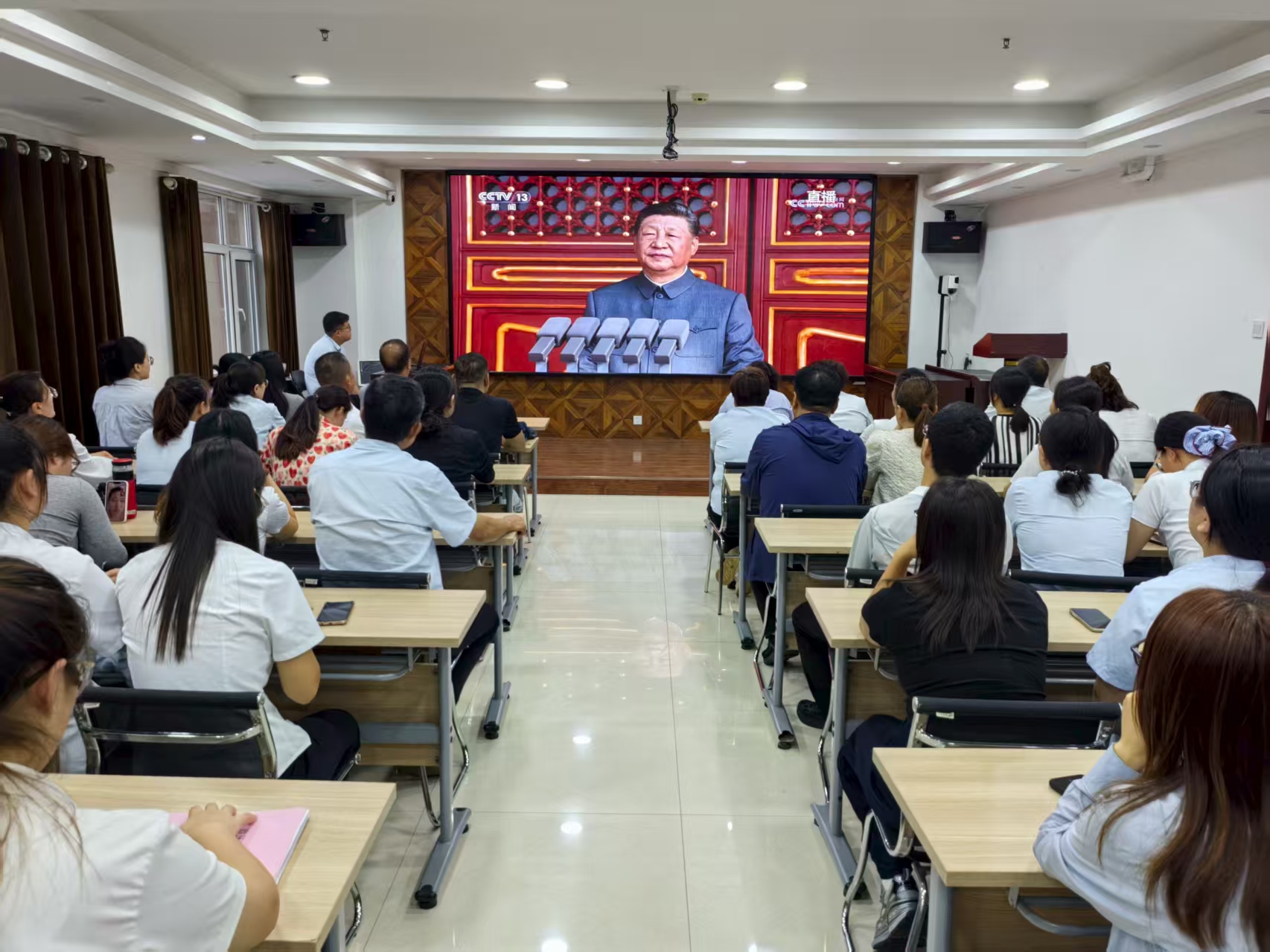 秋日的北京,長風(fēng)浩蕩,花團(tuán)錦簇,旌旗飄揚(yáng)。上午9時(shí),隨著聯(lián)合軍樂團(tuán)奏響雄壯的《義勇軍進(jìn)行曲》,全場齊聲高唱中華人民共和國國歌,鮮艷奪目的五星紅旗冉冉升起,在天安門廣場上空高高飄揚(yáng)。習(xí)近平總書記在大會上發(fā)表重要講話。 9時(shí)15分,閱兵儀式開始。受閱部隊(duì)軍容嚴(yán)整、意氣風(fēng)發(fā),鐵甲戰(zhàn)車整齊列陣、威風(fēng)凜凜,接受習(xí)近平總書記的檢閱。 9時(shí)44分,空中護(hù)旗梯隊(duì)率先亮相,揭開閱兵分列式的序幕。 雄師列陣,氣勢如虹。陸軍方隊(duì)、海軍方隊(duì)、空軍方隊(duì)、火箭軍方隊(duì)威武雄壯,步履鏗鏘;軍事航天部隊(duì)方隊(duì)、網(wǎng)絡(luò)空間部隊(duì)方隊(duì)、信息支援部隊(duì)方隊(duì)、聯(lián)勤保障部隊(duì)方隊(duì)精神抖擻,整齊劃一;武警部隊(duì)方隊(duì)雄姿勃發(fā),氣勢昂揚(yáng)……徒步方隊(duì),英姿颯爽,展現(xiàn)軍人亮麗風(fēng)采。 戰(zhàn)旗獵獵,鐵流滾滾。戰(zhàn)旗方隊(duì)、裝備方隊(duì)一一通過天安門城樓,接受檢閱。新型坦克、無人智能、網(wǎng)電作戰(zhàn)、高超聲速、防空反導(dǎo)、戰(zhàn)略導(dǎo)彈……亮相閱兵場。國之重器,壓艙基石,彰顯國家國防實(shí)力。 戰(zhàn)鷹呼嘯,振翅長空。預(yù)警指揮機(jī)、特種機(jī)、運(yùn)輸機(jī)、轟炸機(jī)、加受油機(jī)、殲擊機(jī)、艦載機(jī)等空中梯隊(duì)依次低空飛過天安門廣場。7架殲-10拉出14道彩煙,寓意著中華民族14年可歌可泣的抗戰(zhàn)歷程,展示翱翔天際的“硬核浪漫”。 觀看過程中,現(xiàn)場氣氛熱烈,振奮人心,公司干部職工難掩激動,全體人員接受了一次深刻的愛國主義教育。大家被習(xí)近平總書記的講話深深感染,被人民解放軍的軍容軍貌和軍事裝備的實(shí)力展示深深震撼,看到祖國的強(qiáng)大,每個人心中都涌起一種強(qiáng)烈的自豪感,激蕩起澎湃的愛國情懷。 大家表示,新時(shí)代新征程,將始終堅(jiān)持以習(xí)近平新時(shí)代中國特色社會主義思想為指引,深入學(xué)習(xí)貫徹習(xí)近平總書記在大會上的重要講話精神,深刻領(lǐng)會中國人民抗日戰(zhàn)爭勝利的偉大歷史意義,傳承和弘揚(yáng)偉大抗戰(zhàn)精神、愛國主義精神,銘記歷史、緬懷先烈、珍愛和平、開創(chuàng)未來。要加強(qiáng)學(xué)習(xí)提升自身素質(zhì),立足崗位做好各項(xiàng)工作,敬業(yè)奉獻(xiàn)抓好服務(wù)管理,實(shí)干擔(dān)當(dāng)推動企業(yè)發(fā)展,為集團(tuán)高質(zhì)量發(fā)展貢獻(xiàn)自己的力量。 |